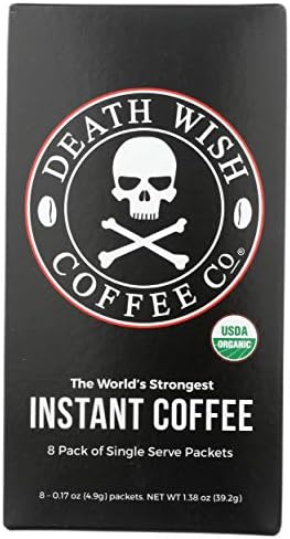 Amazon Com Death Wish Coffee Instant Coffee Dark Roast 8 Single Serve Packets The World S Strongest Coffee Bold Intense Blend Of Arabica Robusta Beans Usda Organic Powder 300mg Of Caffeine